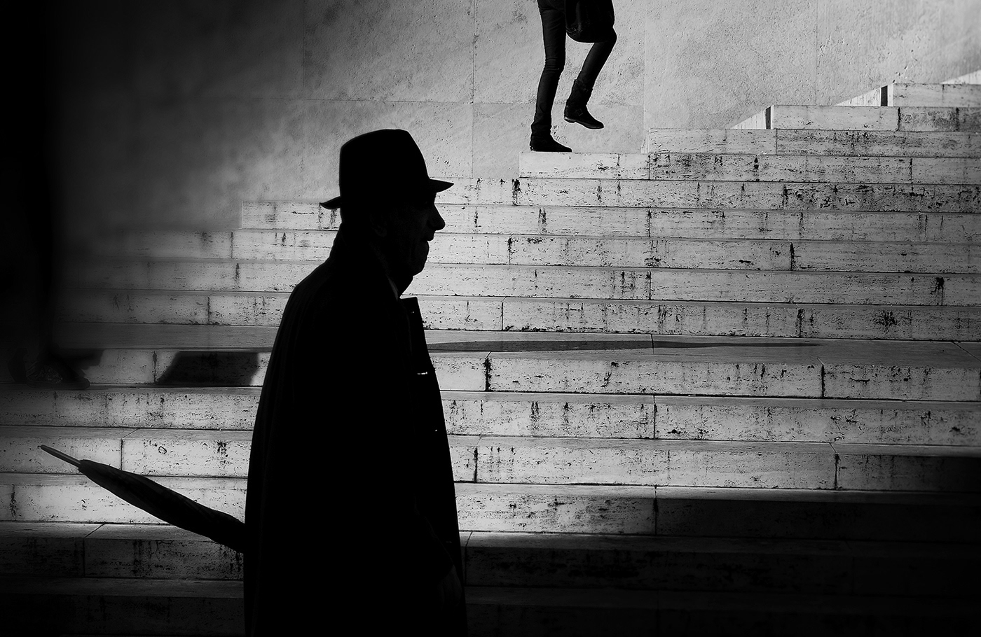 In the series connected to Minimal Street, Luigi Benedetti explores street photography with a minimal and visual approach: his images capture everyday moments, lines, forms, and contrasts of light and shadow, often isolating urban details into essential compositions. In this series, the focus is not on traditional narrative stories, but on pure visual elements — silhouettes, geometries, empty spaces, textures — that transform the ordinary into aesthetic observation.